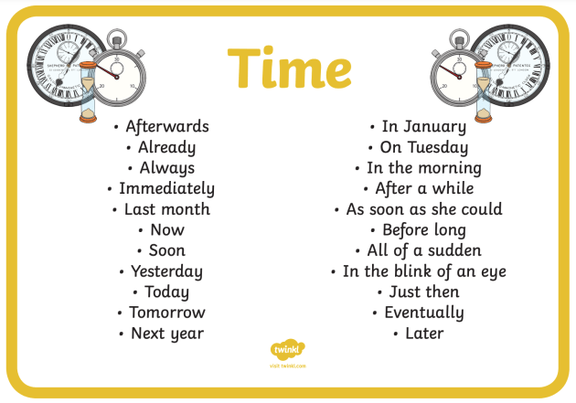 When? (e.g., She will arrive tomorrow.)
