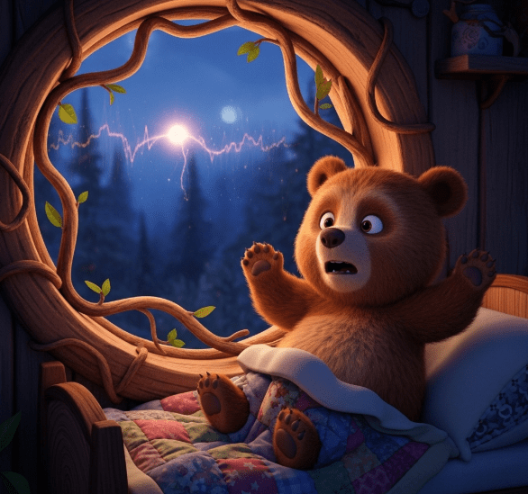 At dawn, little bear Bobo woke up with a jolt! A strange, soft light was pulsing from outside his window. It wasn’t the warm, friendly sun. This light felt… wrong. His heart thumped a little faster, a tiny drum in his chest. He had to see what it was! He quickly got dressed, his sleepy yawns replaced by a growing sense of urgent curiosity.
