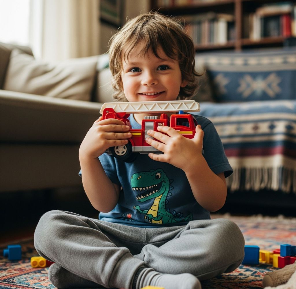 “These are my toys.” 🧸🚗 (The toys are all around me!)